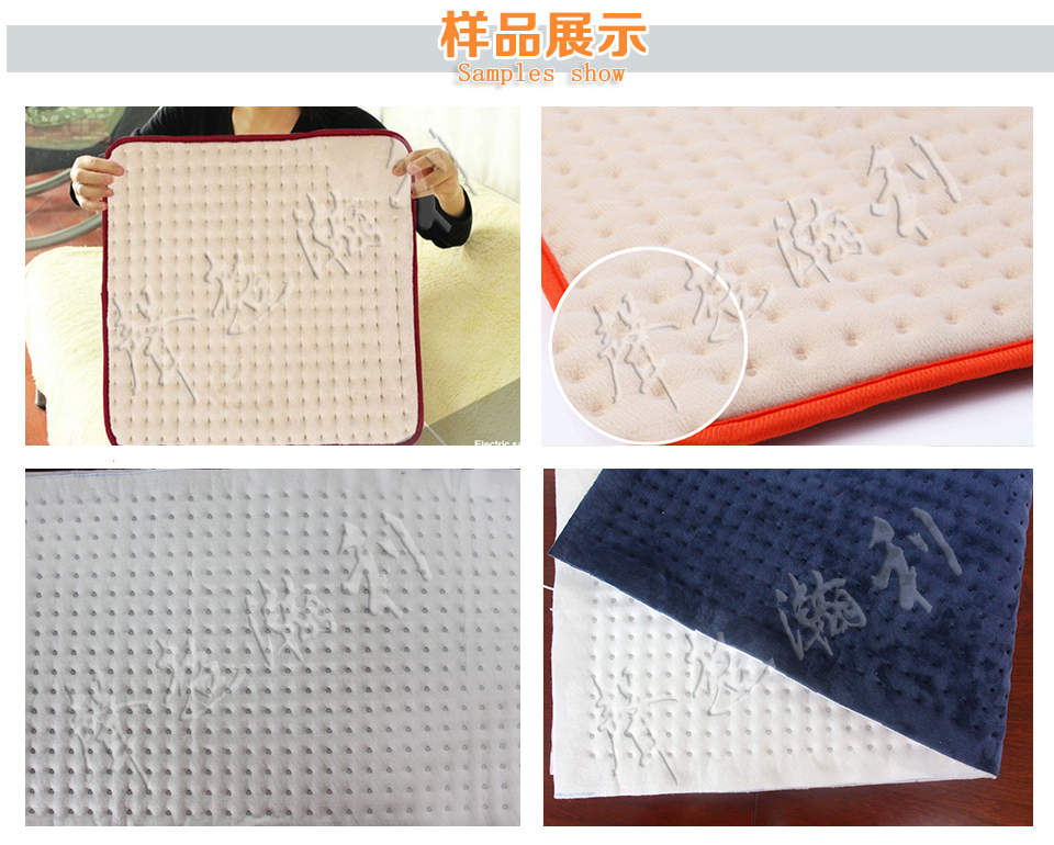 4、采用超聲波系統(tǒng)與自動(dòng)化工藝相結(jié)合,可依據(jù)用戶需求,生產(chǎn)不同花型的電熱毯成品;