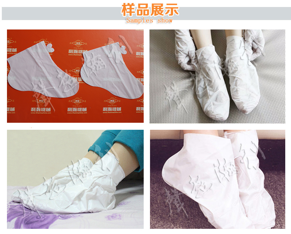 全自動超聲波手足膜機, 此機將PP、PE材料與無紡布進行對拆無線焊接,整機由送料至成品全自動化,所生產處的足套熔點平整、不滲水、不硬化,可做到鞋套(手膜/足膜)壓紋、對折、縫合、切邊一遍成型,紋路清析、在生產時不變形,可很大的減少材料浪費.
