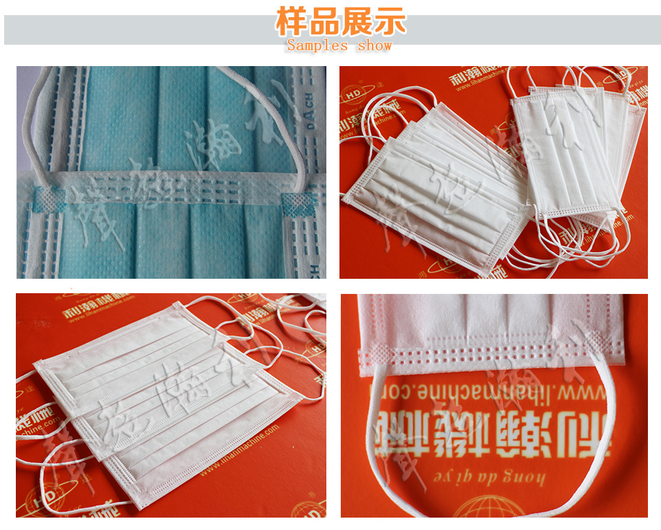 "鴻達"牌平面外耳帶口罩機(一拖三), 是利瀚機械精研出平面口罩系列一款設(shè)備, 由四臺設(shè)備進行連線組成,分別有: 一臺本體制造機和三臺口罩外耳包邊焊接機組成, 該機從原料進入, 自動打片, 自動移位, 自動分列, 自動包邊上耳帶, 到成品輸出, 全自動化制作, 一機完成口罩的數(shù)道生產(chǎn)工藝, 減少口罩在生產(chǎn)過程人體的接觸, 從而容易達到行業(yè)檢測標準.